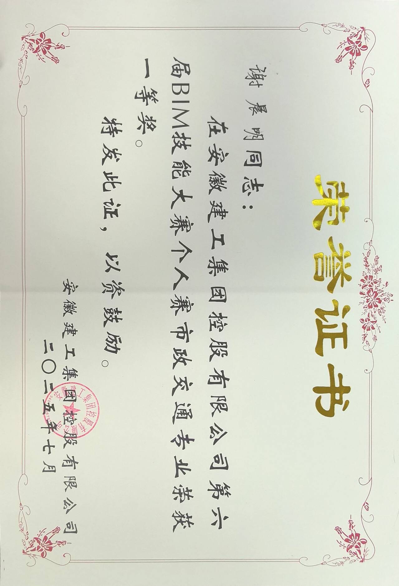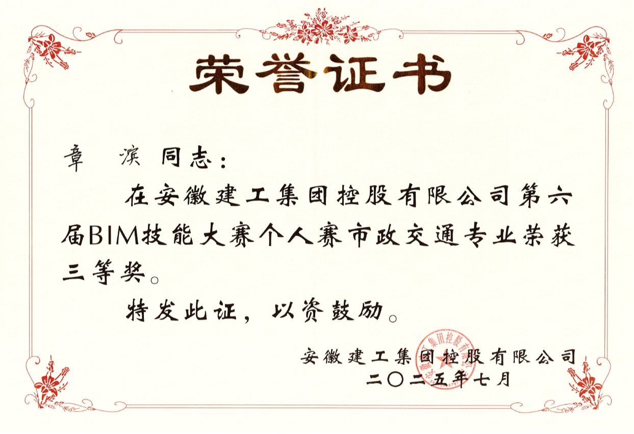 公司參賽隊(duì)伍由市政公司謝晨明、合肥分公司張安強(qiáng)和公路二公司章濱三人組成,其中謝晨明榮獲市政交通專業(yè)一等獎,張安強(qiáng)榮獲建筑機(jī)電專業(yè)一等獎,章濱榮獲市政交通專業(yè)三等獎。